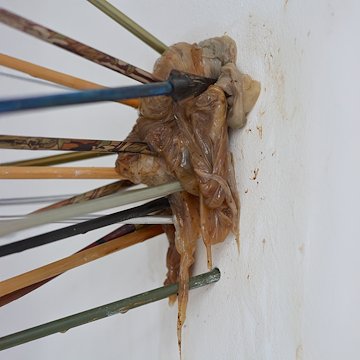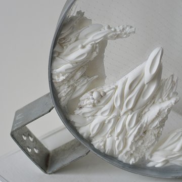 A few years ago, I developed an obsession with a strange object: the Miseyo Identity Theft Protection Roller. A self-inking roller stamp that printed scrambled text-like shapes, it is intended to obscure personal information like account numbers on mail. This motif and its implications invaded my work; as well as security envelope patterns and other patterns and scrambled letters meant to anonymize or erase ourselves or our identities in the name of perceived safety.