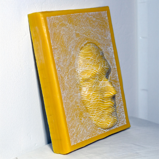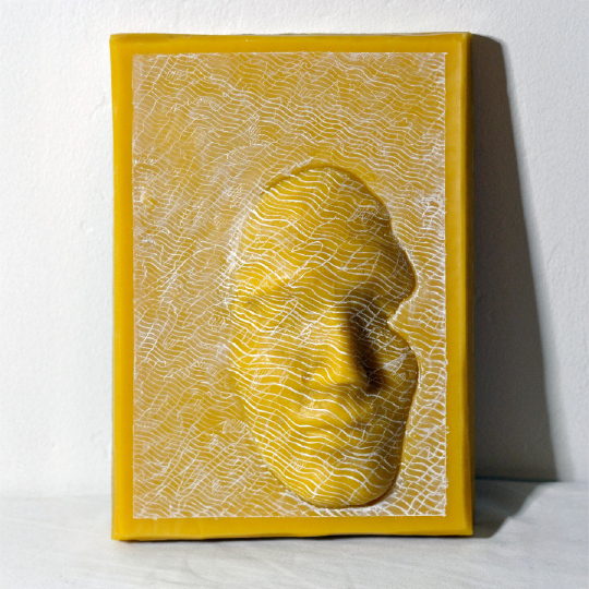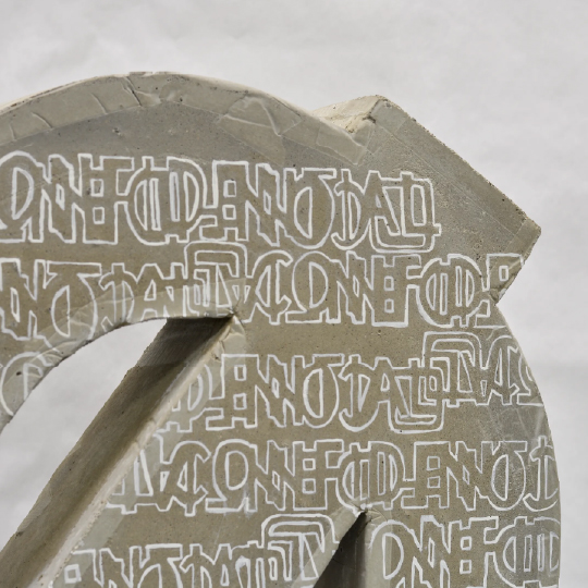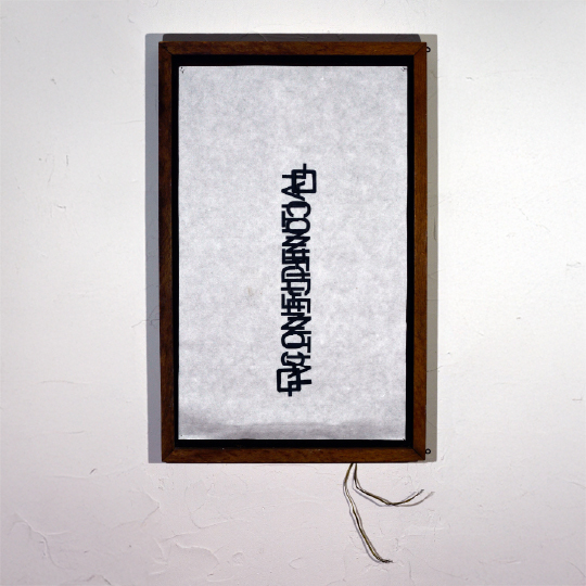 A few years ago, I developed an obsession with a strange object: the Miseyo Identity Theft Protection Roller. A self-inking roller stamp that printed scrambled text-like shapes, it is intended to obscure personal information like account numbers on mail. This motif and its implications invaded my work; as well as security envelope patterns and other patterns and scrambled letters meant to anonymize or erase ourselves or our identities in the name of perceived safety.