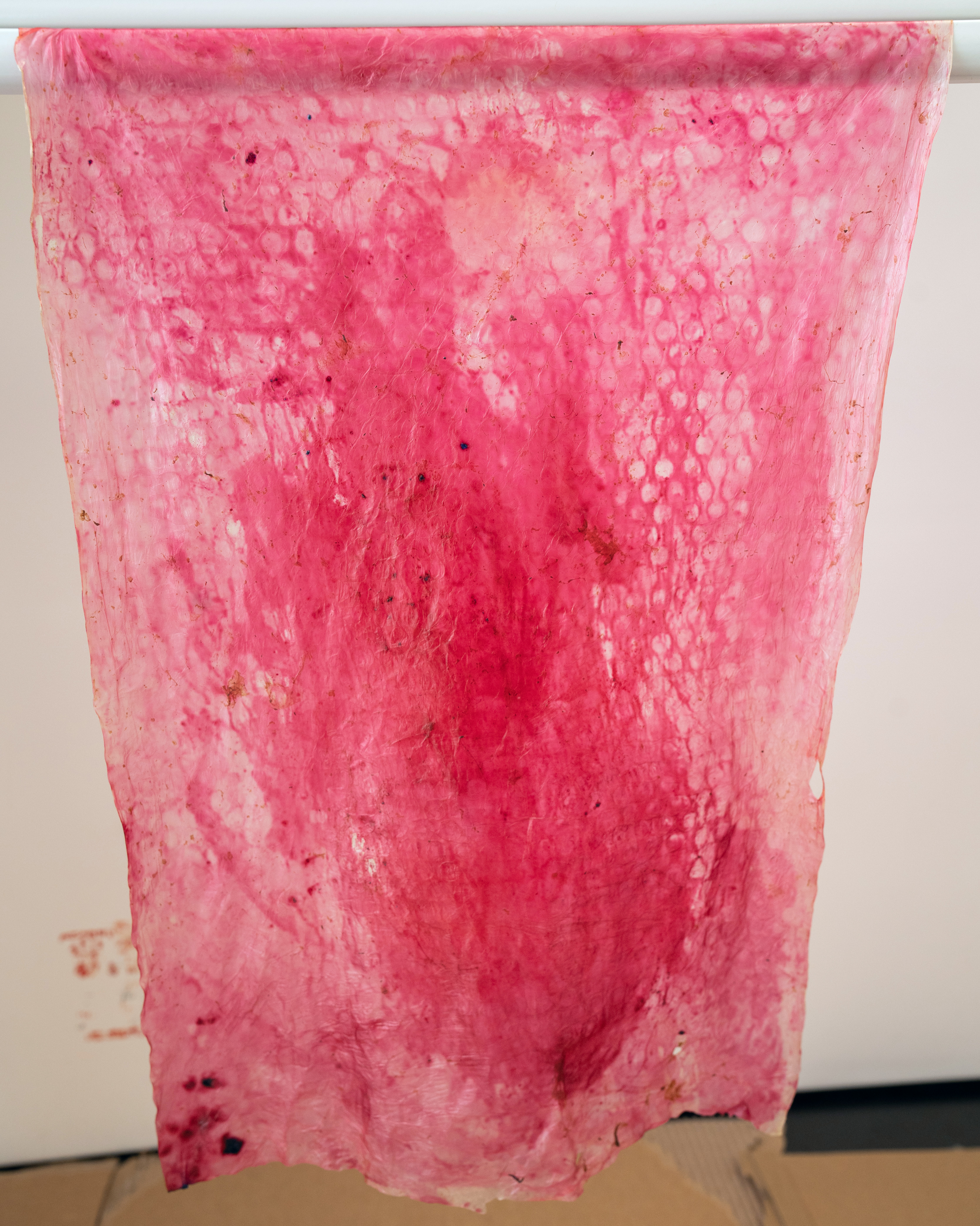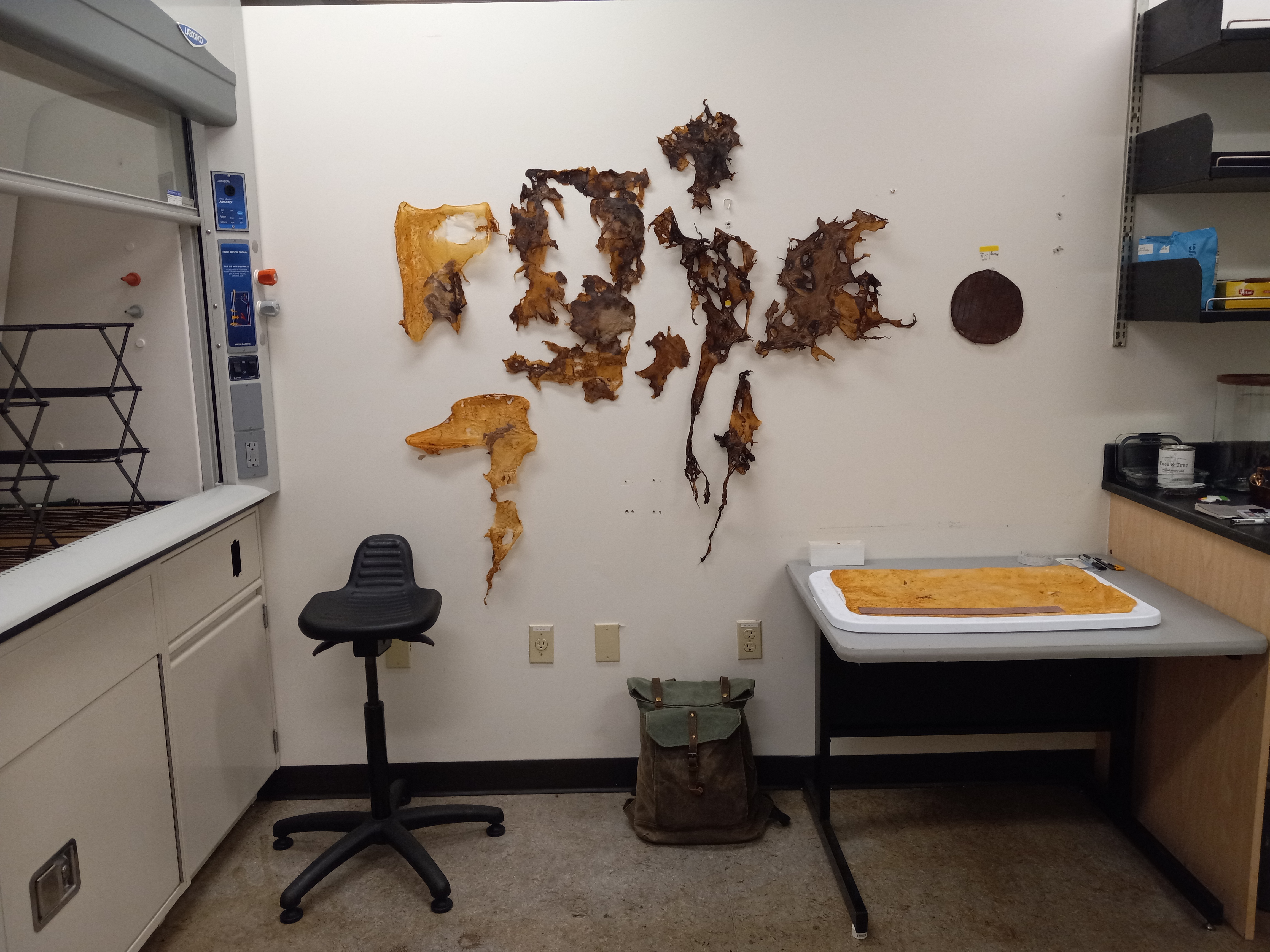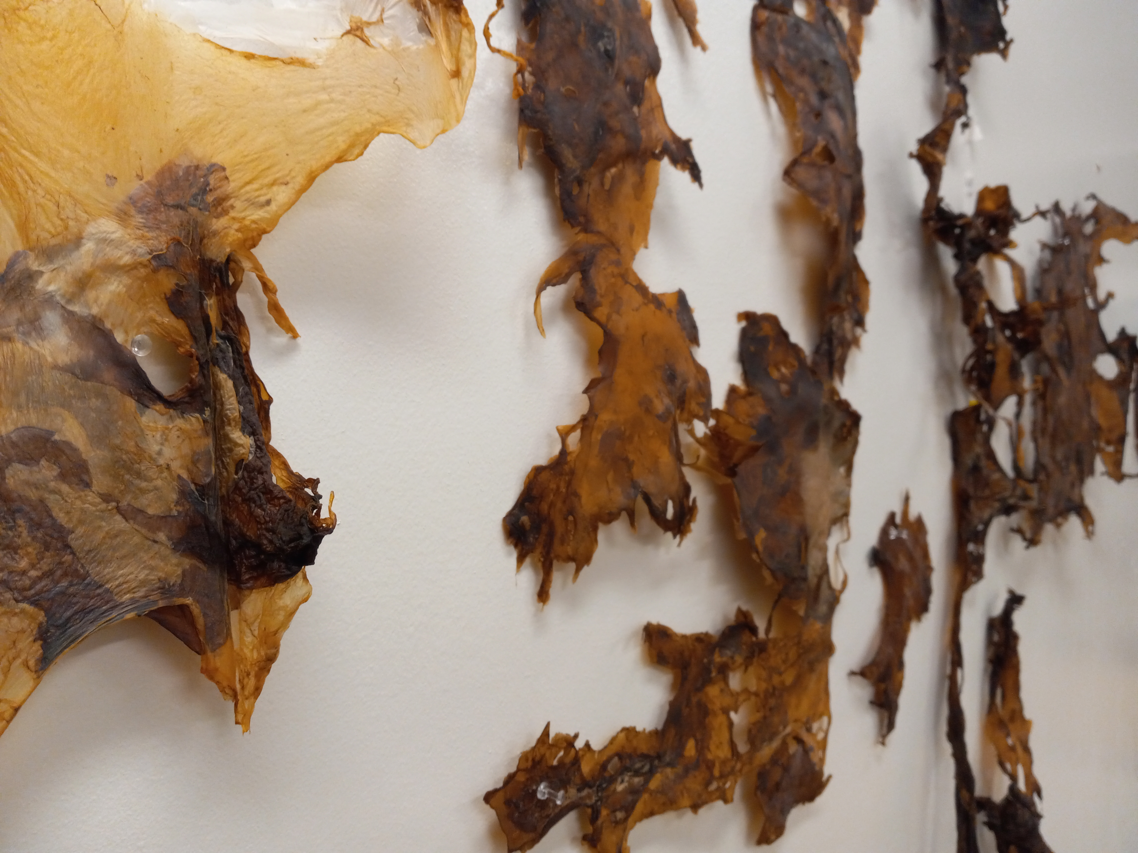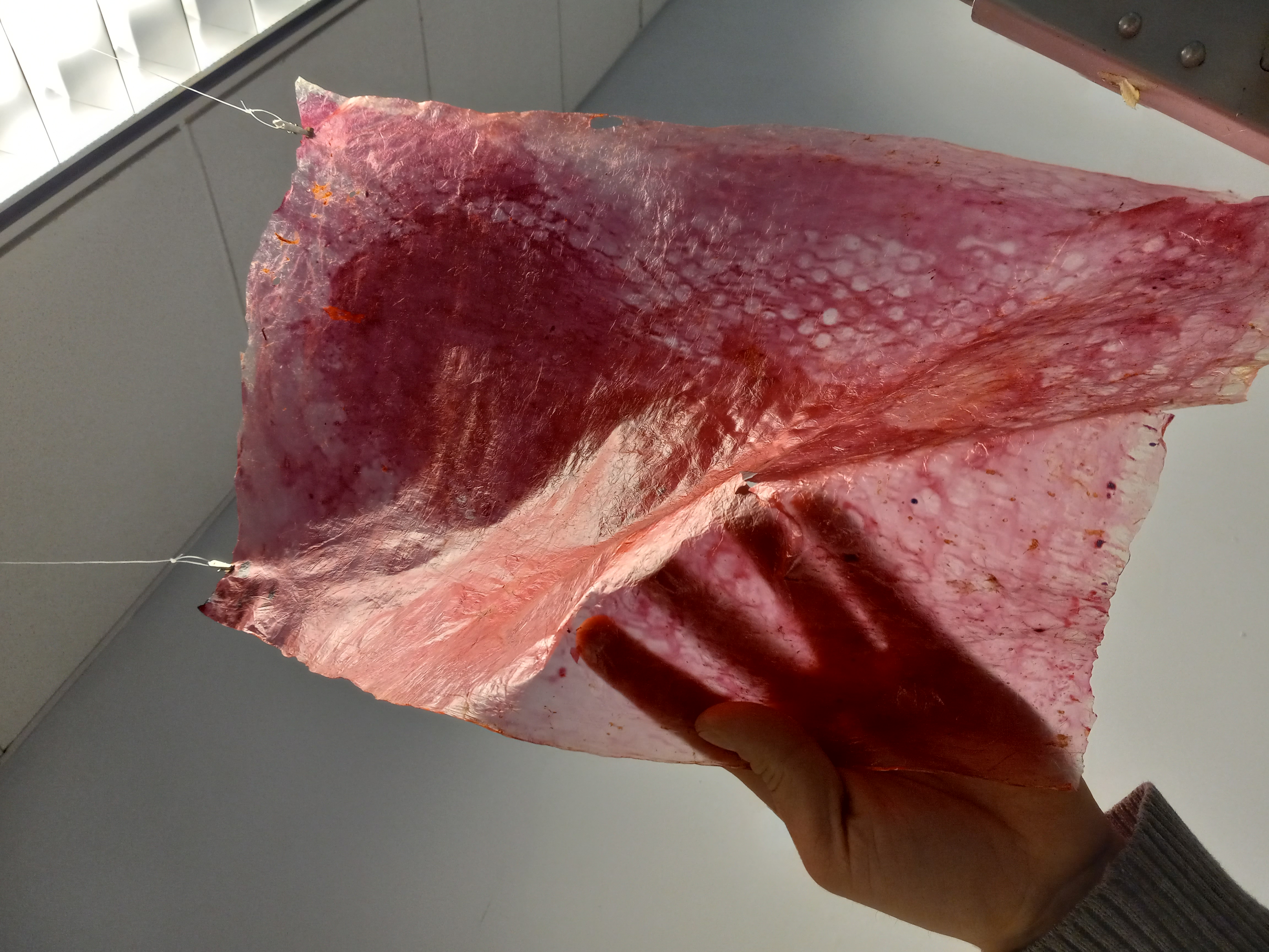 Dried on flat non-porous surface, pinned to wall